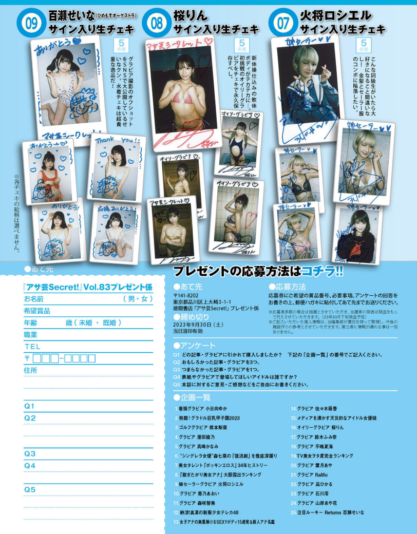 アサ芸Secret!2022.10.08 Vol.78 吉田莉桜 藤乃あおい 小日向ゆか 橋本梨菜 佐野さくら 風...