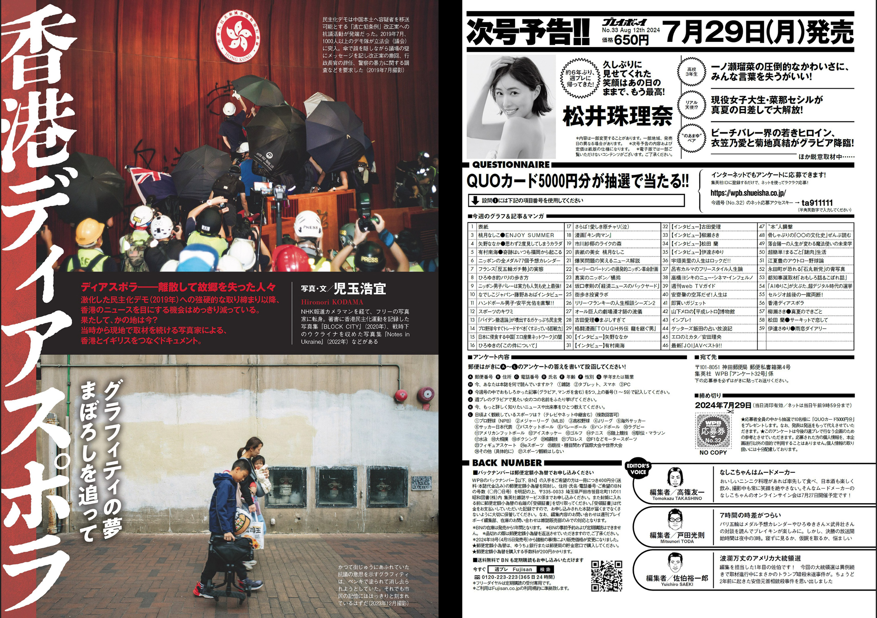 [Weekly Playboy] 2018 No.33 (大原優乃 山谷花純 葵わかな 桃月なしこ 藤野志穂 森田...