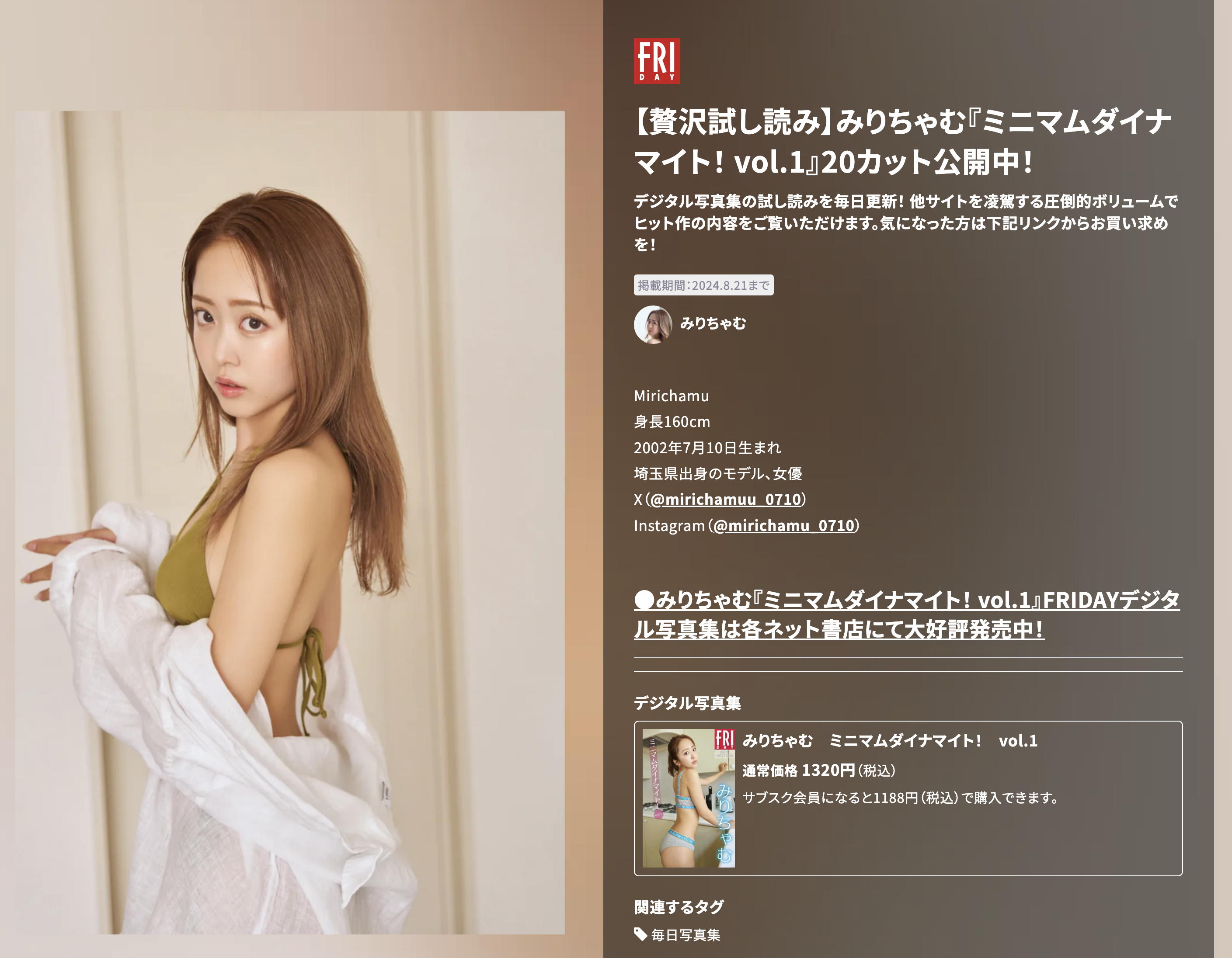 FRIDAYデジタル写真集 みりちゃむ『ミニマムダイナマイト vol.1』20カット