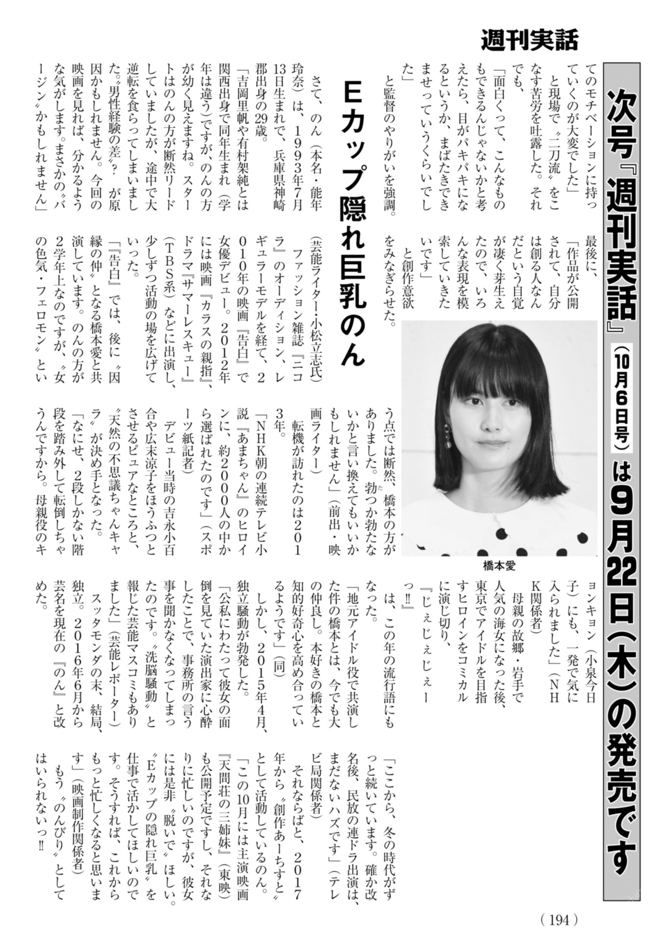 週刊実話 2022年10月6日号