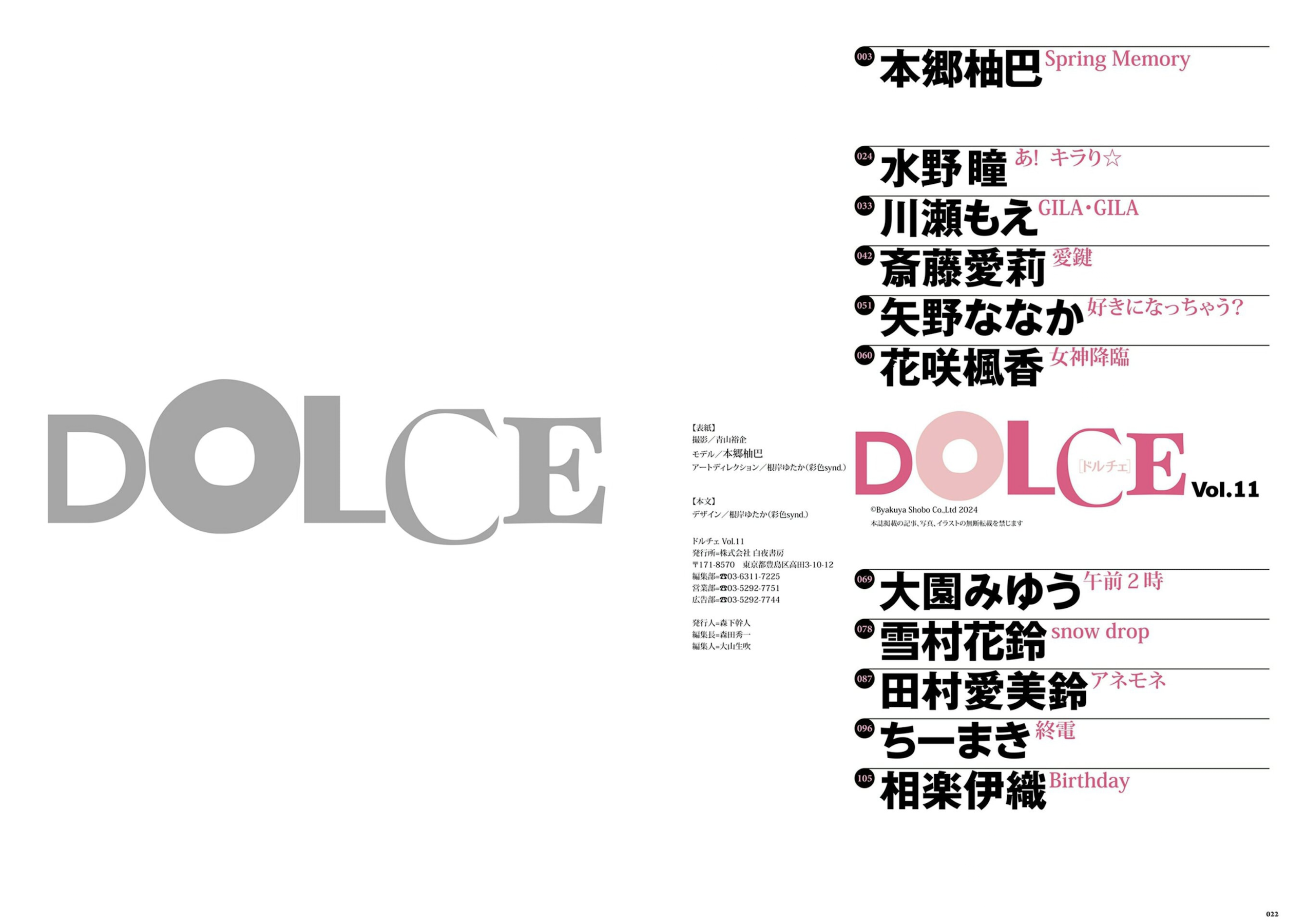 DOLCE Vol.11 本郷柚巴 水野瞳 川瀬もえ 斎藤愛莉 矢野ななか 花咲楓香 大園みゆう 雪村花鈴 田村愛美鈴 ちーまき 相楽伊織 [119p]