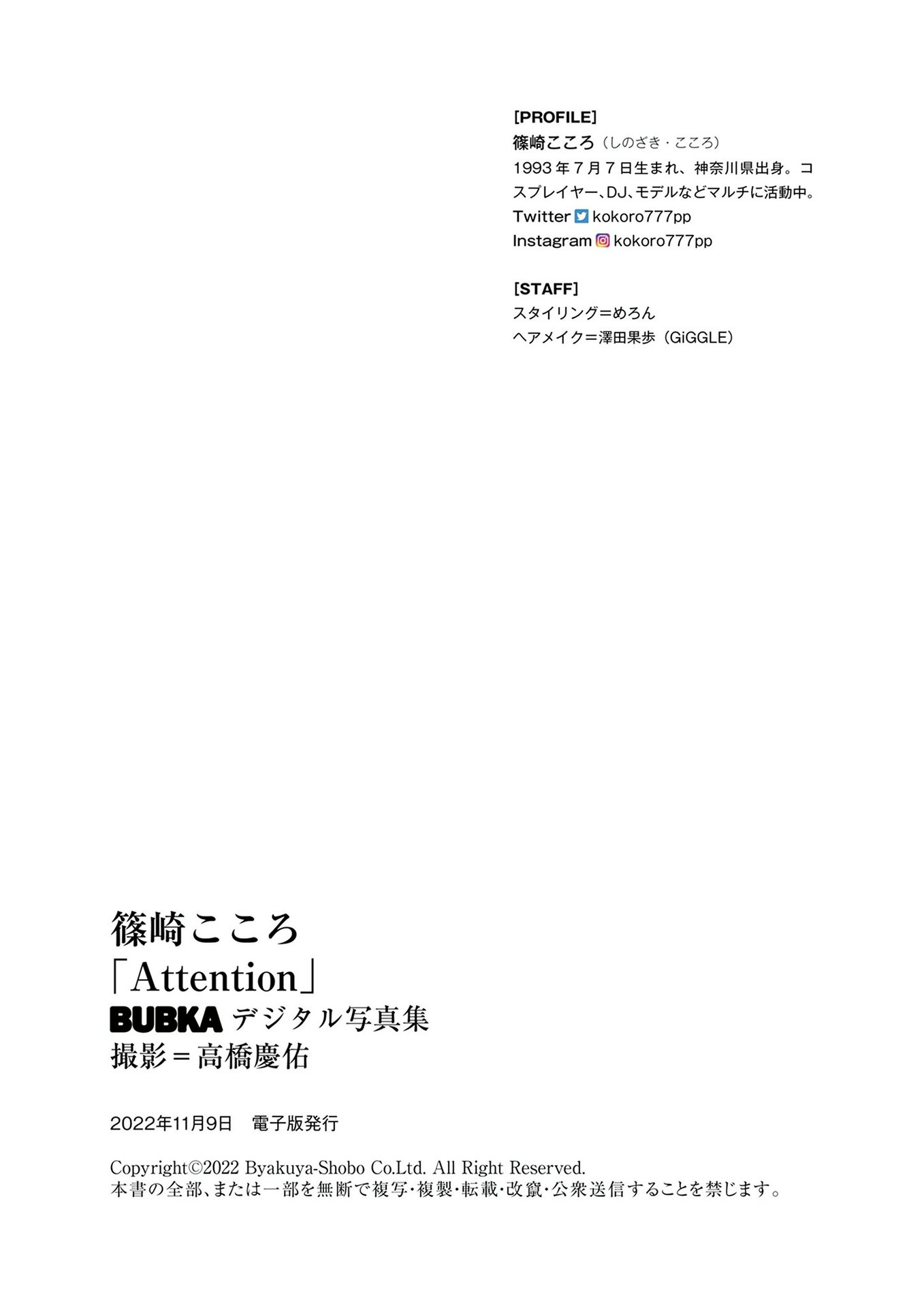 BUBKAデジタル写真集 篠崎こころ「Attention」