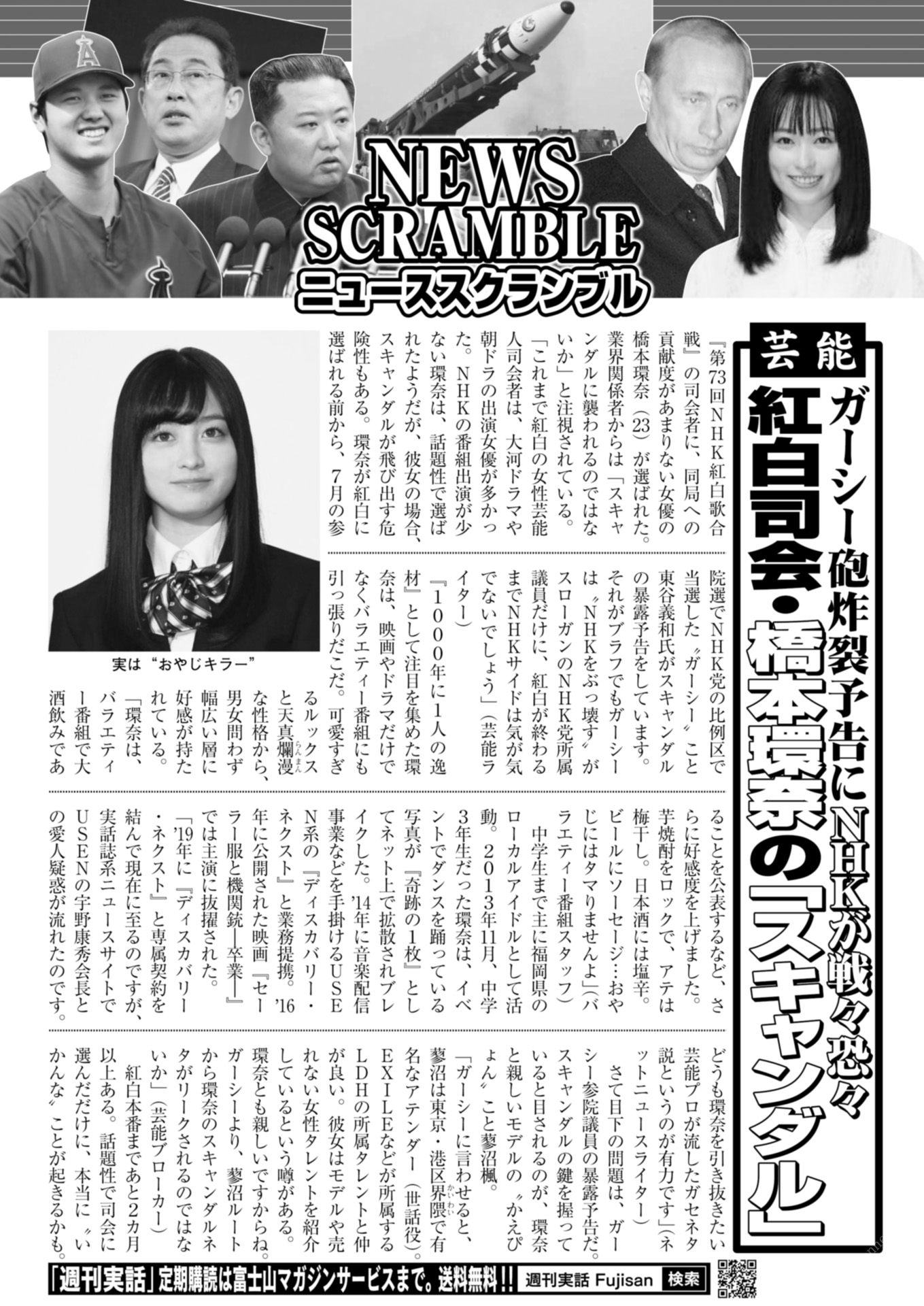 週刊実話 2022年12月08日号 (藤木由貴 神道あやか 河北彩花 石川澪 桃園怜奈 田所百合 小野六花 紫月なな)