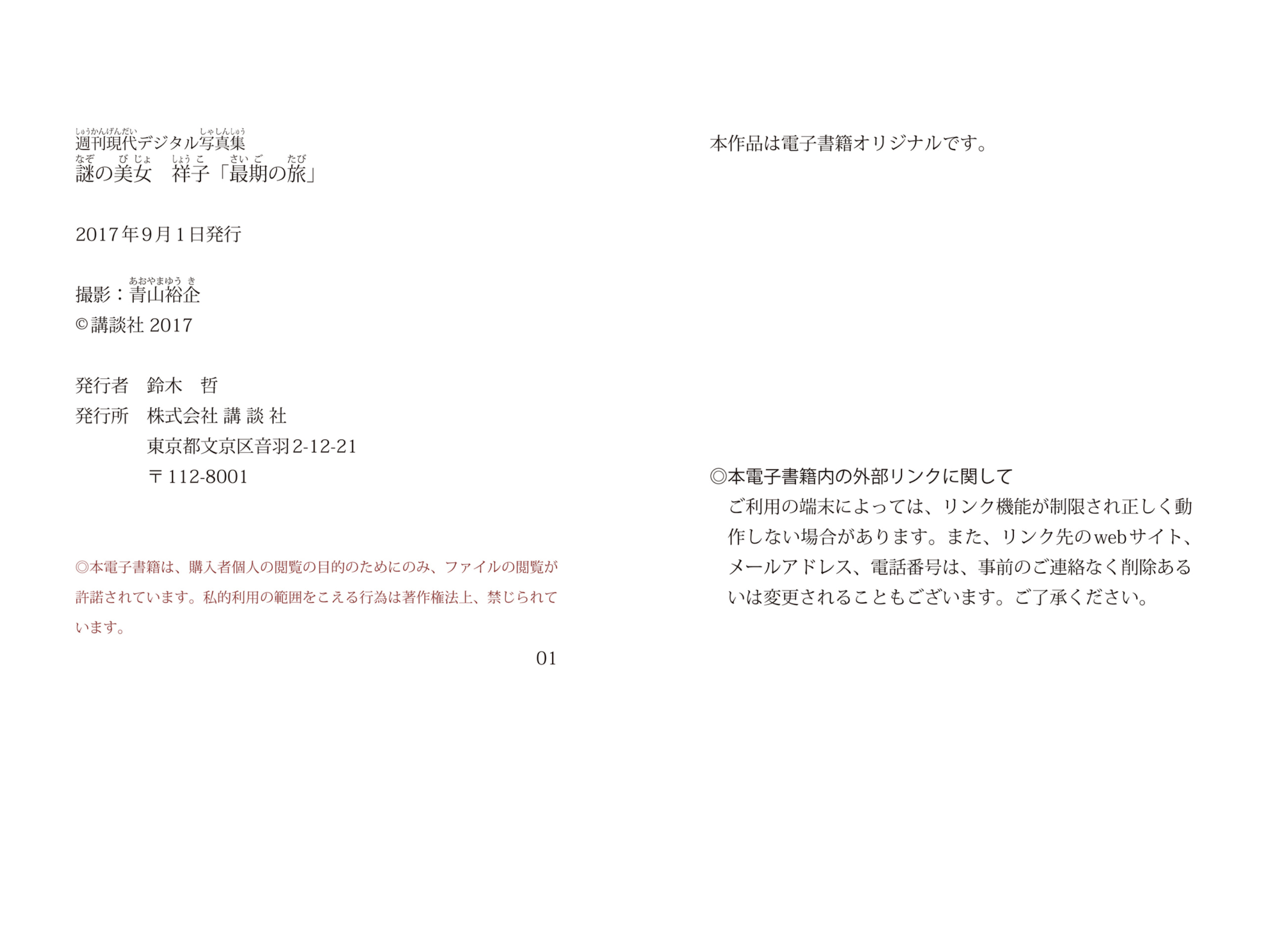 週刊現代デジタル写真集 謎の美女 祥子『最後の旅』