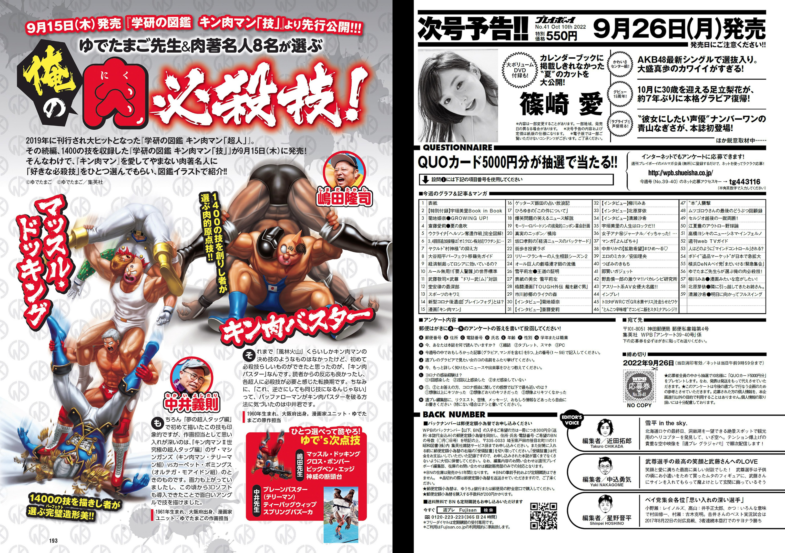 [Weekly Playboy] 2022 No.39-40 (雪平莉左 宇垣美里 斎藤愛莉 菊地姫奈 柳川みあ 北原芽依 他)