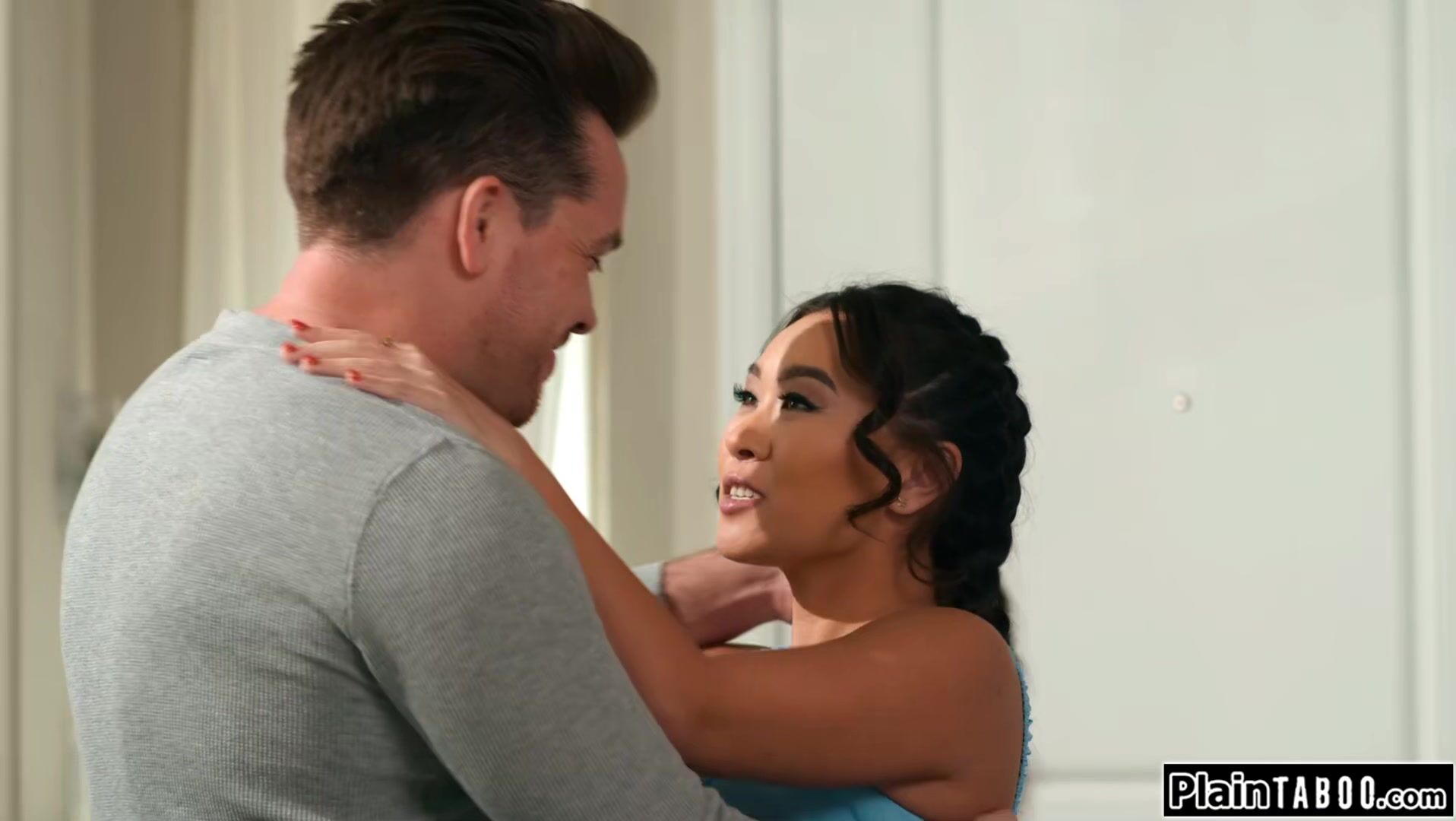 Asian teen Kimmy Kimm moves in with her stepuncle and they have been fooling around for quite a while.He masturbates his stepniece while kissing her and eats out her tasty pussy.The peteite small tits brunette deepthroats his big cock and gets banged